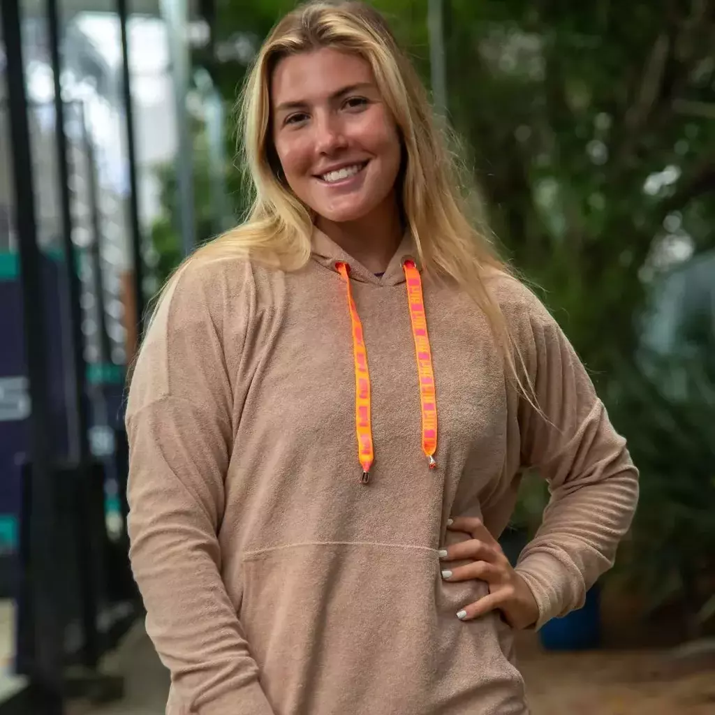Versátil, pode ser usado o ano inteiro — seja nas manhãs mais fresquinhas, no fim de tarde ou até como sobreposição nos looks urbanos. O capuz com cordão colorido dá um charme extra e o bolso canguru adiciona praticidade ao visual.