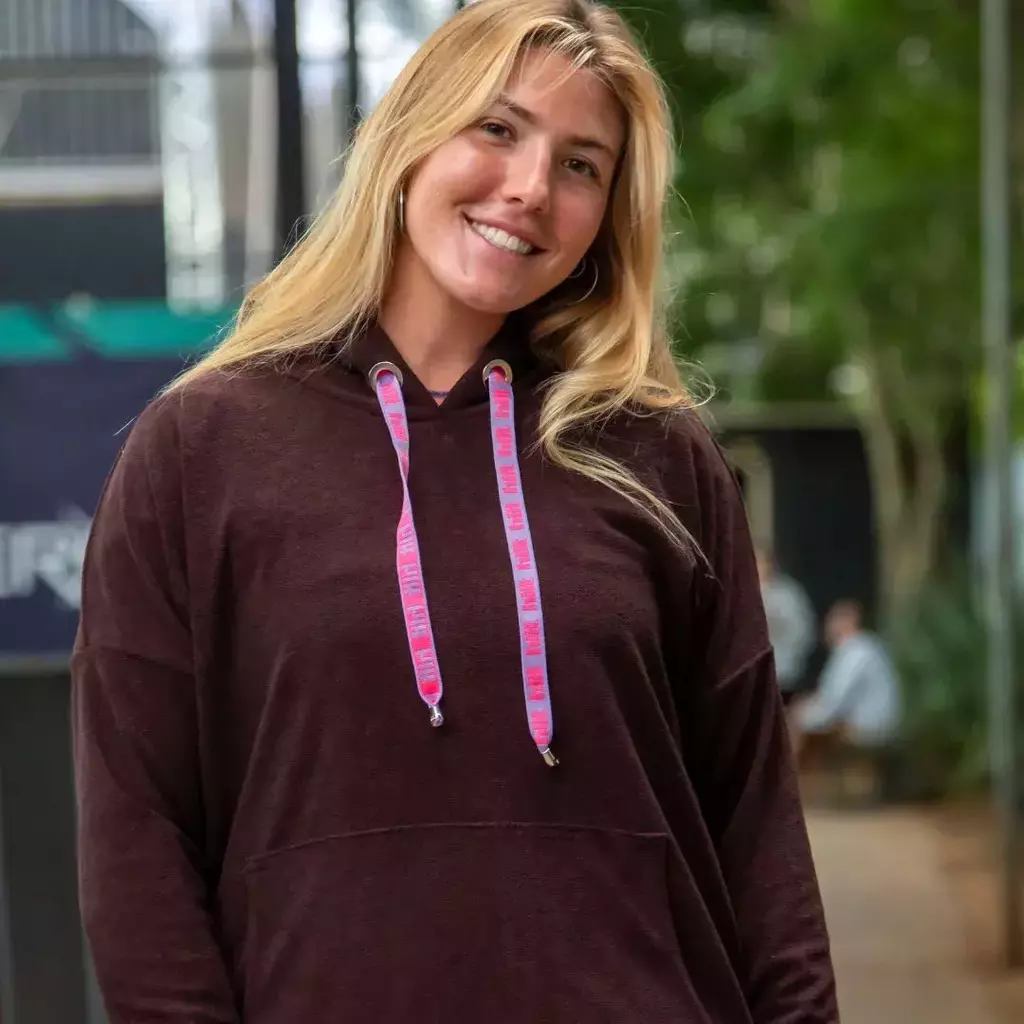 Versátil, pode ser usado o ano inteiro — seja nas manhãs mais fresquinhas, no fim de tarde ou até como sobreposição nos looks urbanos. O capuz com cordão colorido dá um charme extra e o bolso canguru adiciona praticidade ao visual.